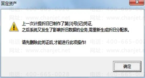 本月没有计提折旧 或本月已经计提折旧又做了调整业务影响了折旧数据,如录入了原始卡片、原值调整、累计折旧调整等。此时在点击月末结账的时候会提示: