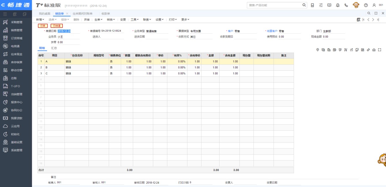 从 T+12.2 最新补丁开始,销货单如果有多行明细,就算被一张收款单核销,往来期间对账单上收款单也会按照销货单的明细行显示多行。